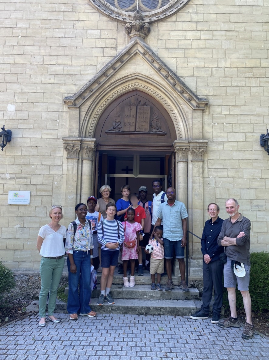 Départ de la Cité paroissiale juste après la messe des familles. Pique-nique dans le parc Chanorier, avec le témoignage de Ange Brou, participant des pèlerinages d’adultes paroissiaux. Première étape chez les Sœurs missionnaires de l’Évangile du Vésinet avec un bel échange entre les jeunes et sœurs Colette et Rachel sur la vocation religieuse, le charisme particulier de cette congrégation, le parcours très international des sœurs et les services rendus en paroisse, dans les établissements scolaires et auprès des familles de prisonniers. Deuxième étape au Temple protestant du Vésinet où les jeunes ont pu dialoguer avec le pasteur James Lowe, avec Carole Freynet, présidente du conseil de la communauté protestante de la boucle de la Seine, et avec Françoise Leblond, membre du groupe œcuménique de notre paroisse de Croissy, sur les différences et les points communs entre protestants et catholiques.